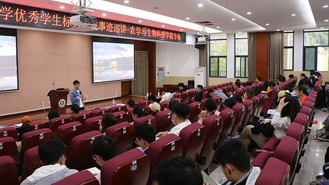 最后是来自蚕桑纺织与生物质科学公司的孙小桐同学,曾任院团委员工会主席、年级长等职位,同样也多次获得奖学金及太阳成集团tyc234cc优秀员工标兵等荣誉称号。她从热爱、责任和奉献三个方面讲述了这几年她的老员工活所获所得。究其动力,孙小桐告诉同学们,是热爱支撑着自己,通过各种社会实践服务于他人,奉献出自己的专业知识。她享受着这途中给他带来的一切,这都源于她的热爱。
