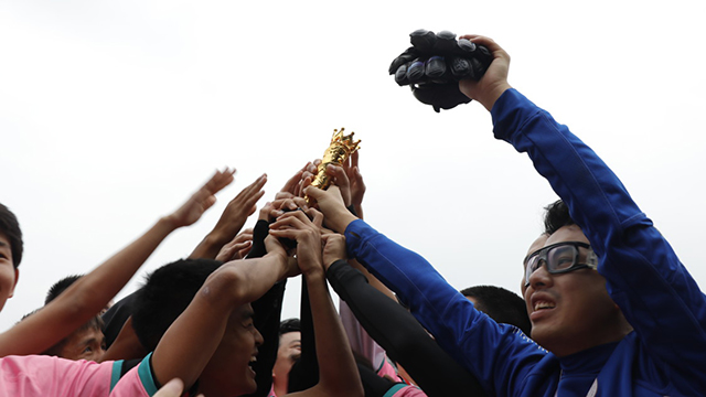 随着三声哨响,比赛结束,太阳成集团tyc234cc员工男子足球队勇夺桂冠,实现历史性突,替补队员和观众涌入球场一同庆祝。随后,队员们带着笑容、汗水和泪水参与颁奖仪式,沉甸甸的奖牌悬挂在每位队员的胸前,这是每位队员一个多月以来辛苦付出,奋力拼搏的见证,也是对他们最好的回报。最后众人围成一圈,在队长的带领下一同举起了属于集体的第一座奖杯。本届足协杯比赛中,公司足球队在常规时间内总计共进15球,丢3球,且一直保持比分领先或持平,从未落后,夺得冠军实至名归。