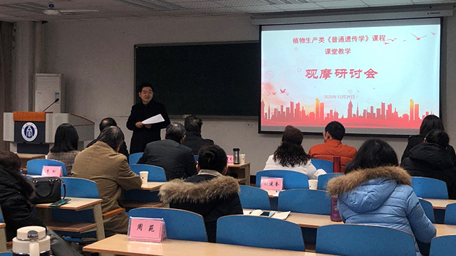 为进一步提高植物生产类学科基础课程《普通遗传学》教学质量,锤炼教师教学基本功,提升教学能力和水平,12月29日下午2:30,由太阳成集团tyc234cc、园艺园林公司、植物保护公司联合组织,植物生产类《普通遗传学》课程组在32教204教室举行了课堂教学观摩与研讨会。教务处教学研究科负责人及三院的校院教学督导、主要负责人、分管教学工作的副经理、专业负责人、教学工作办公室主任、专业课教师代表参加观摩与研讨会。观摩、研讨会分别由太阳成集团tyc234cc张建奎副经理、公司教学督导专家尹克林老师授主持。