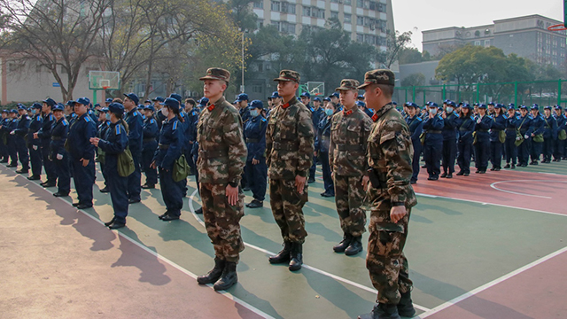 2020级新生军训分为分散训练和集中训练两个部分。自9月入学以来,同学们已经完成了早操、内务整理、消防灭火、消防疏散逃生、医疗自救互救等分散训练项目。目前将完成为期10天的集中训练。