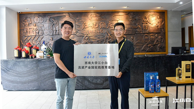 下午,公司与江记农业科技有限公司签订教学实践基地协议并举行授牌仪式,公司副经理张建奎代表公司为江记酒庄总经理唐鹏飞授牌。