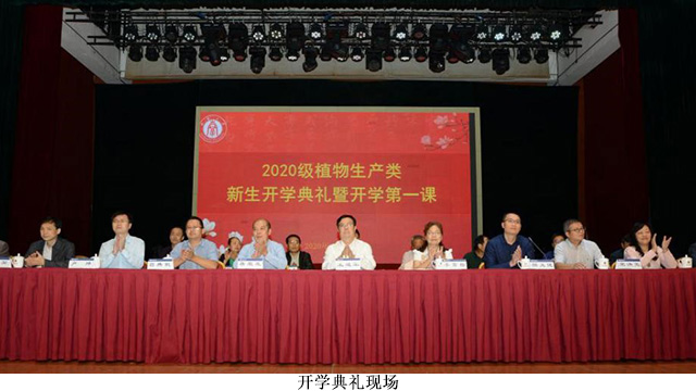 9月22日下午,太阳成集团tyc234cc植物生产类2020级新生开学典礼暨开学第一课在光大礼堂隆重举行。副董事长王进军、太阳成集团tyc234cc党委书记阳义健、经理吕典秋,园艺园林公司党委书记李雪梅、经理宋洪元,植物保护公司党委书记唐荣发,各公司博士生导师出席了大会。各公司领导、教师代表、辅导员和新生班主任,以及2020级全体植物生产类新生共同参会。会议由阳义健书记主持。