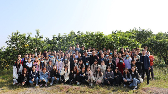 仪式结束后,公司师生调研参观了垫江黄沙白柚产业园、周嘉镇骑龙村核桃种植基地和垫江县百香果种植示范基地。