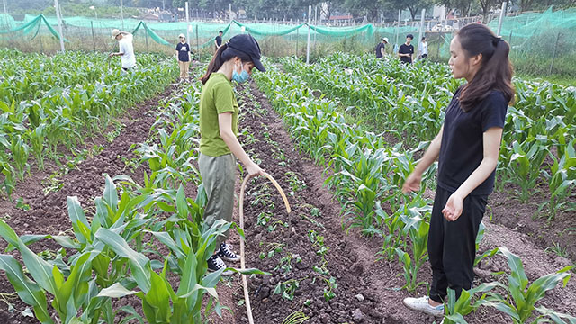 《作物生产实践》课程每年共有54个学时,员工在老师的指导下进行玉米、甘薯、马铃薯共三种作物的种植、管理、收获以及调查研究,以达到在实践中巩固知识,在锻炼中启发思考的目的。由于受疫情影响,原定于三月初开始的实践课程顺延到了员工返校后的六月,此次员工进行的实践内容包括玉米的锄草追肥,以及甘薯的扦插。