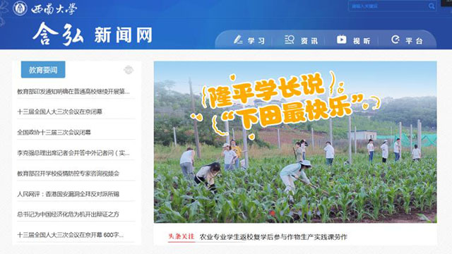 6月6日,公司含弘新闻网首页报道了公司2018级农学专业员工返校复学后在教学实验基地进行《作物生产实践》课玉米套作甘薯相关农事活动劳作的情况。据悉,在返校复学线上学习一周后转至线下学习,2018级农学专业各班员工逐步投入农作物生产实践,在本周已陆续完成玉米甘薯套种部分实践内容。