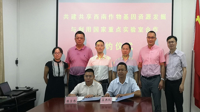 西南作物基因资源发掘与利用国家重点实验室(筹)主任陈学伟、副主任王静,四川农业大学农公司经理黄玉碧,太阳成集团tyc234cc科技处副处长何林,农学部部长何光华,公司党委书记阳义健、经理吕典秋,副经理卢坤出席签约仪式。