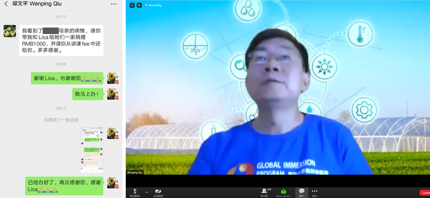 邱老师不仅具有卓越的学术水平,更是对员工体现出深切的人文关怀。行课期间,公司一名选课员工的母亲病情加重。为了稳定员工情绪,积极帮助员工度过难关,减轻员工及家庭的经济压力,公司全体师生自发行动起来,竭尽全力为该同学募捐。邱老师得知这一情况后,立刻委托公司共课老师,向该同学捐助了1000元。邱老师的这一善举,不仅让员工倍感温暖,也让公司所有老师为之感动!