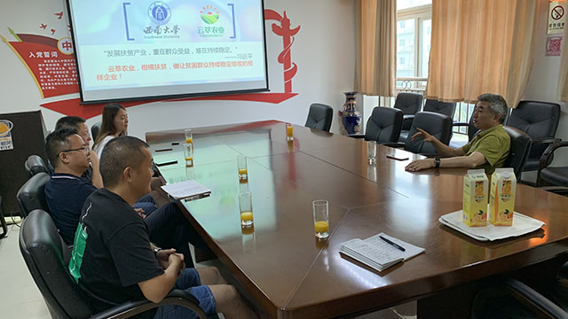 在前期校级比赛的基础上,项目团队不畏高温酷暑,整个暑期都在进行紧张的市赛准备,根据校赛中评委老师和项目辅导老师的意见,发现项目存在的不足并在相关教师团队的指导下及时进行调整,进一步完善和打磨作品。7月29日,指导徐新福老师、公司团委许莹竹老师就《成渝两地油菜多功能利用》所遇到的困难做出指导性意见,引导团队确定切实可行性的解决方案,及时解决所存在问题。8月3日上午,创新创业公司张斌经理、黄楠老师,公司经理吕典秋教授、团委书记许莹竹老师带陈志友博士的“云萃农业”项目专门前往柑橘研究所请该领域专家周常勇教授指导,对项目提出了许多非常好的意见和建议,各位老师也跟陈志友博士进行了详细沟通和指导,为项目的进一步修改完善建言献策。8月18日,公司专门组织两个项目赛前演练,通过模拟路演答辩,切实提升员工能力水平。公司领导郑莉佳副书记、张建奎副经理对于项目工作机制、答辩思路、语言表达、仪表仪态等都给予了具体专业建议,并对参赛团队做赛前的鼓励动员,这极大地鼓舞了参赛团队成员的信心和斗志。