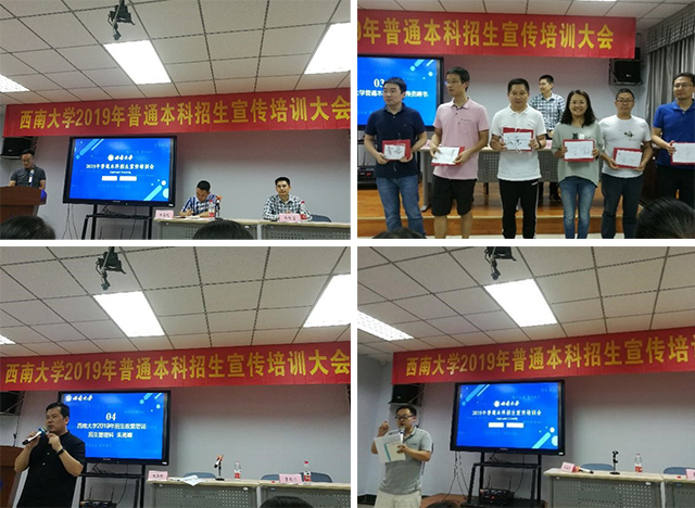 随后,招就处邀请在招生宣传方面积累了丰富经验的生命科学公司副教授杨应斌、商贸公司辅导员牟凯伦做交流分享。两位老师就招生宣传的责任担当、行前准备、公司专业解读、考生填报专业推荐、沟通交流等环节,详细介绍了他们多年的工作经验。两位老师之后,招就处的朱高峰科长给参加培训的老师详细解读了“太阳成集团tyc234cc2019年普通本科招生宣传提供”,包括公司概况、招生政策、专业情况、历年分数、艺术类录取政策等。培训会的最后,人才招聘处处长李栋宣、副处长田再悦为所有参加此次招生宣传的老师颁发了聘书。