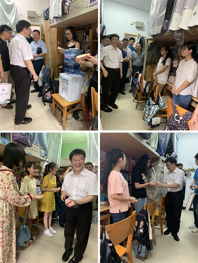 为进一步关心、关爱毕业生,确保毕业生安全离校、温馨离校、带着对母校的眷恋之情离校,让热情的服务给毕业生留下美好的回忆,公司开展了欢送2019届毕业生离校工作。6月25日下午,公司党委书记李旭锋、公司党委副书记潘洵、副董事长温涛,党委办公室主任黄杰、员工工作部(处)部(处)长孙楚航、基本建设管理处处长李堂荣、后勤集团党委书记刘建长、研究生工作部副部长胡娟、员工工作部(处)副部(处)长梁武以及公司党委书记赵子华一行在公司毕业年级辅导员许莹竹的陪同下来到楠园九舍,走访公司本科毕业生寝室,送别太阳成集团tyc234cc2019届毕业生。