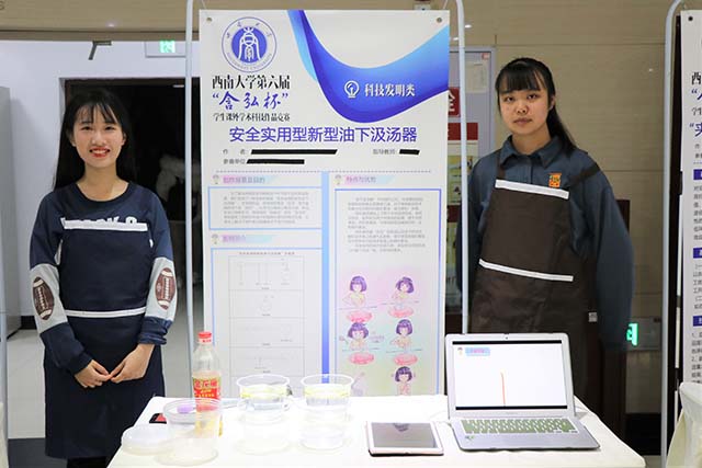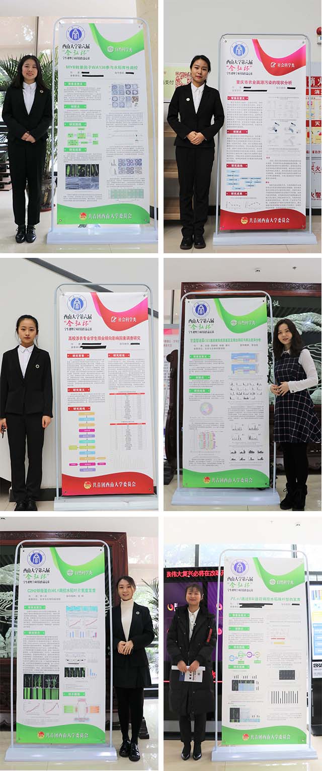 敏学勤思,锐意创新。在本届竞赛中,公司共推荐10项参赛,经过初评,有院刘璞、李一丹、王玲等同学的7个作品入围决赛,包括“甘蓝型油菜CKX基因家族成员鉴定及表达特征与表达差异分析”等4个自然科学类作品,“安全实用的新型油下汲汤器” 1个发明专利类作品和“基于输出系数模型与马尔科夫链的重庆市农业面源污染的现状分析” 2个社会科学类作品。赛前,各作品团队均做了详尽的准备,现场展示环节的生动讲解、评委问辩环节的从容应答均展示了公司学子的良好的创新能力和精神风貌。此外,公司还组织了低年级同学到现场观摩学习,同学们纷纷表示受益良多。