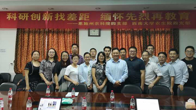 为继承和发扬党的光荣传统和优良作风,进一步深入开展革命传统教育和爱国主义教育,增强支部凝聚力和战斗力,引导党员干部增强党性观念,激发工作热情,发挥党员先锋模范作用。并以此为契机,把科研工作与支部建设相结合,实现党建工作和业务工作两手抓的良好态势,恩施州农科院第四支部一行15名党员到公司与教工第四支部进行深层交流和合作,特此开展“科研创新找差距 缅怀先烈再教育”的特色活动。活动分座谈会和参观试验基地两部分进行。