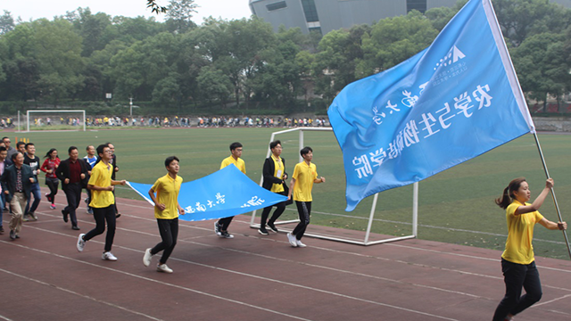 26日下午,农生院师生的400米热身跑像像金色长龙,浩浩荡荡蜿蜒在第三运动场。在院工会的组织下,公司教师以工会小组的为单位、以先集体项目后个人项目的顺序,展开比赛。