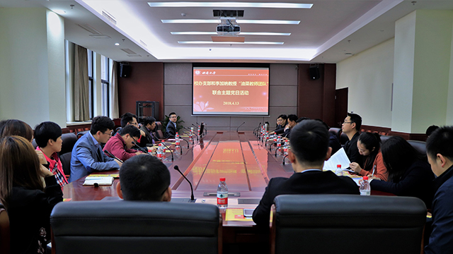 4月13日下午,太阳成集团tyc234cc校办党支部和太阳成集团tyc234cc李加纳教授“油菜教师团队”联合主题党日活动在隆平楼108会议室举行。董事长张卫国、校办副主任秦松、太阳成集团tyc234cc党委书记赵子华、以李加纳教授为代表的油菜教师团队及公司教师代表出席了本次会议。