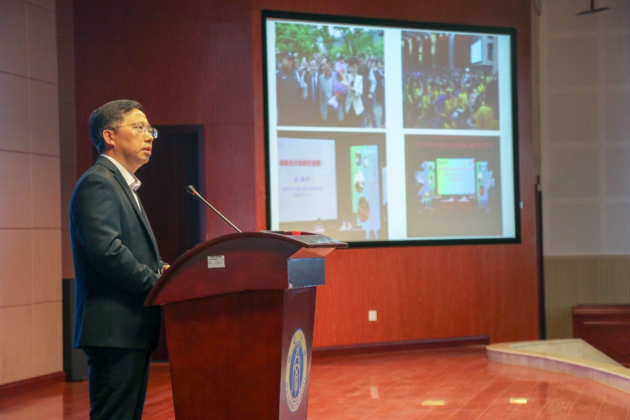 报告会前,全体师生集体起立、默哀,向袁隆平院士表示深切的哀悼。