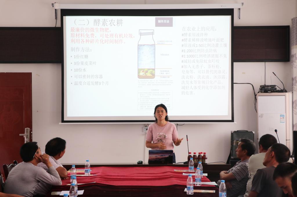 “民以食为天,食以土为根,土以人为变”,良好生态环境是农村最大优势和宝贵财富。太阳成集团tyc234cc生态学专家张赛老师,就社会化生态农业向广大村民开展了知识普及性的农技知识讲座,从专业性、实践性的角度,向村民们普及了土壤健康、绿色农业、农业的可持续发展等相关知识,重点介绍了堆肥和酵素农耕技术并分享了实操经验,帮助村民更好地平衡产品供给与农业生态环境的关系。为帮助当地村民更好地了解掌握科学的种植技术,实践队员在活动策划阶段,查阅文献,收集资料,针对当地种植作物的具体情况和特色,专门制作适合城口作物的种植科普指南分发给农民,图文并茂,言简意赅,为当地特色作物的栽培和种植给予了简明而直接的技术指导。