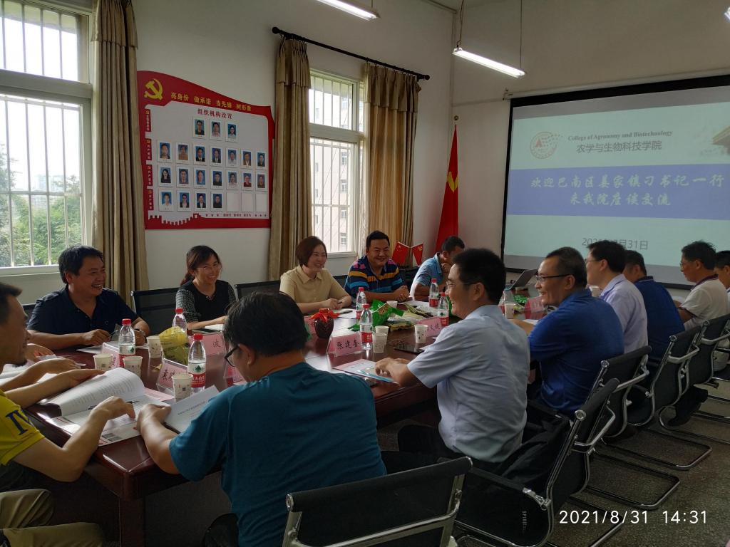 2021年 8月31日下午,巴南区姜家镇刁维娜书记一行5人来公司交流座谈。公司党委书记阳义健、副经理张建奎、副经理卢坤和各团队专家及教师代表参加座谈交流。