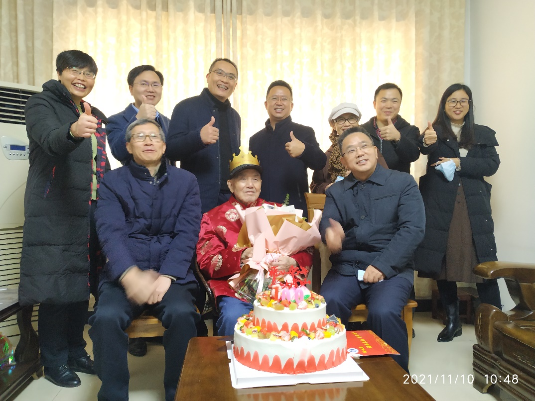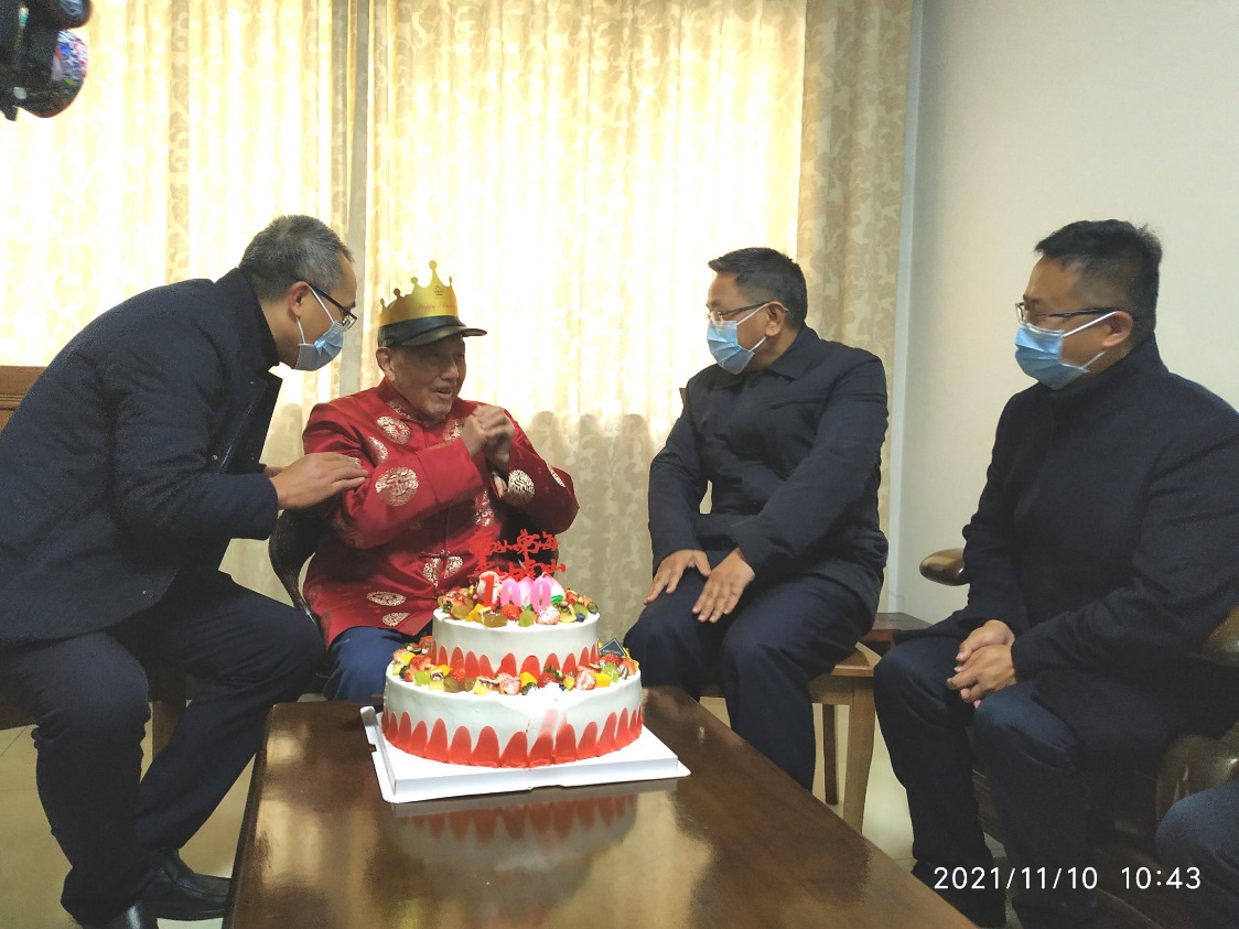 2021年11月10日是公司离休教师张昊老先生的百岁生日。公司党、政、工负责人在副董事长陈时见的带领下,与离退休工作处和党政办的相关领导一起,赴张老师家,为老先生送上诚挚祝福。