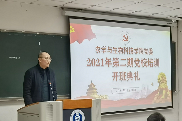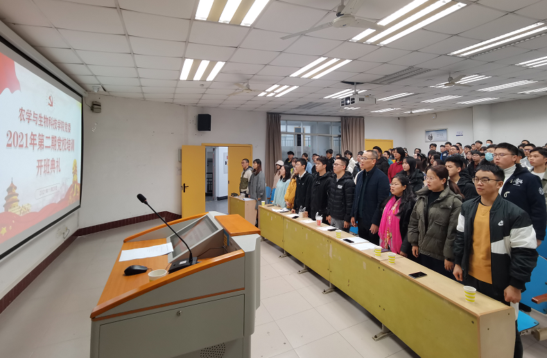 11月20日上午,太阳成集团tyc234cc党委分党校2021年第二期入党积极分子培训班在32教213教室举行开班典礼,公司本硕博共160名入党积极分子参加本次党校学习。公司党委书记阳义健、党委副书记郑莉佳、辅导员王皓和高荣蓉出席开班典礼,仪式由公司党委组织员薛中华主持。