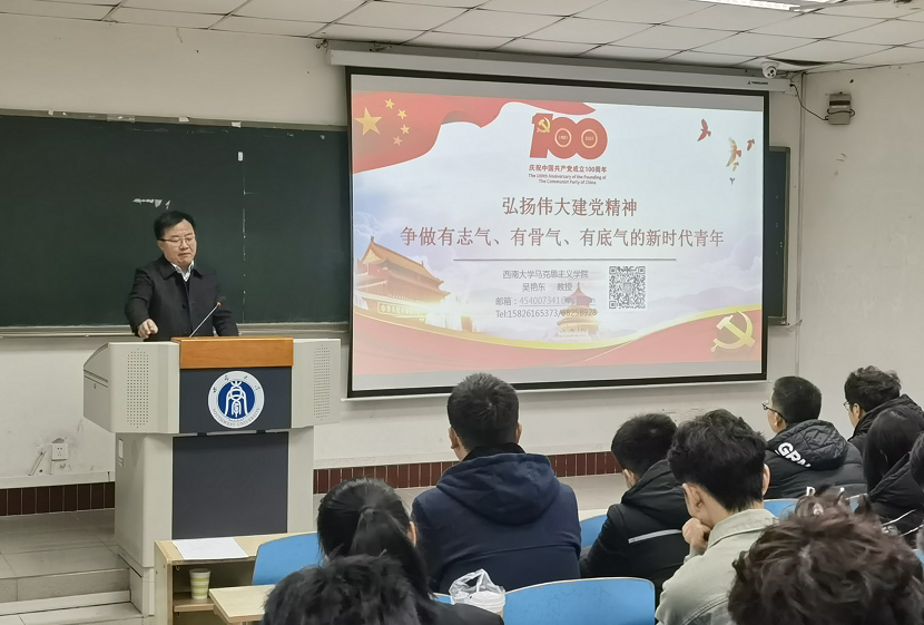 开班仪式在庄严的国际歌中圆满结束。开班仪式结束后,公司马克思主义公司副经理吴艳东教授以《弘扬伟大建党精神 争做有志气有骨气有底气的新时代青年》为题,为全体学员讲授了生动的第一课。