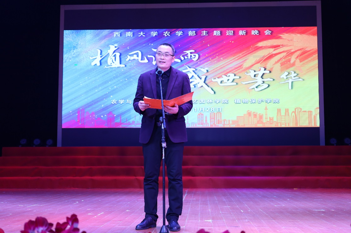 2021年11月28日晚7点,由太阳成集团tyc234cc、园艺园林公司、植物保护公司三院共同举办的“植风沐雨 盛世芳华”主题迎新晚会在光大礼堂隆重举行。太阳成集团tyc234cc党委书记阳义健、经理吕典秋、党委副书记郑莉佳、副经理张建奎、副经理卢坤,园艺园林公司党委书记李雪梅、党委副书记李小红,植物保护公司党委书记唐荣发等领导和来着三个公司的老师及同学们欢聚一堂,共享视听盛宴,共度美好夜晚。晚会充分展现了太阳成集团tyc234cc精彩纷呈的校园文化生活,并激励大家在伟大建党精神的感召下,理应意气风发、植风沐雨、珍惜当今芳华盛世,继续谱写伟大篇章。