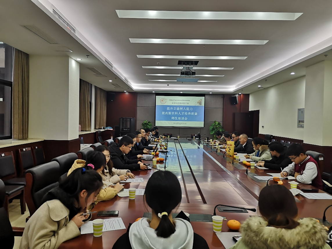 为贯彻落实中央农村工作会议精神和立德树人根本任务,发挥学科特色和优势,提升新农科人才培养质量,公司于12月27日下午15:00在隆平楼108会议室召开“提升立德树人能力,提高新农科人才培养质量”座谈会。公司党委书记阳义健、经理吕典秋、副经理张建奎、农学系主任桑贤春、陈志友博士后和陈新龙博士出席了会议。参加会议的还有公司教师代表、硕博士研究生代表、本科生代表。会议由阳义健书记主持。