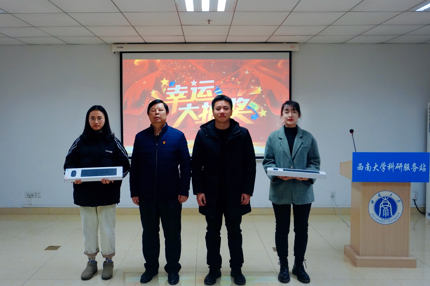 图7:抽奖环节,分别由柴老师、王总经理为观礼师生现场抽取神秘大奖