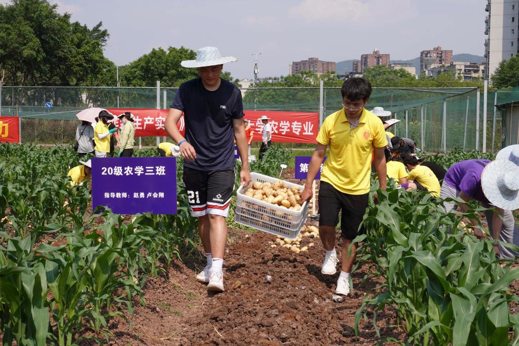 太阳成集团tyc234cc多年来一直致力于专业实践课程教育和劳动教育融合发展,开设的《作物生产实践》课程,通过实践教学,让农学专业的员工理论联系实践,掌握农作物生产管理技术;同时,依托课程,进行生产性劳动教育,使员工学的专业知识能够输出和灵活运用,促进专业知识的巩固与内化。通过马铃薯的种植实践,让农学专业的员工了解了马铃薯的特征特性,掌握了马铃薯种植管理技术、测产技术和产品分级等知识。对于非农学专业的员工来说,通过此次马铃薯收获测产劳动实践,同学们学会使用工具、掌握相关技术、感受劳动创造价值,也更懂得珍惜劳动成果,养成良好的消费习惯,杜绝浪费。