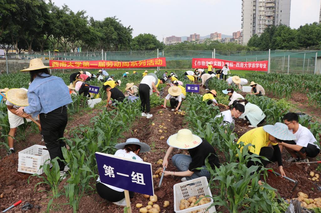 为充分发挥劳动育人功能,结合太阳成集团tyc234cc第一届劳动周活动安排,2022年5月7日下午,太阳成集团tyc234cc在八号门对面的教学科研基地开展马铃薯收获测产生产劳动实践活动。活动依托《作物生产实践》课程,在员工种植的马铃薯收获之际,组织农学专业的员工对马铃薯产量进行检测,并邀请全校各公司不同专业的72名同学参与到收薯实践活动中,深入田间劳动,体验农耕文化,体会劳动乐趣,培养劳动情怀。