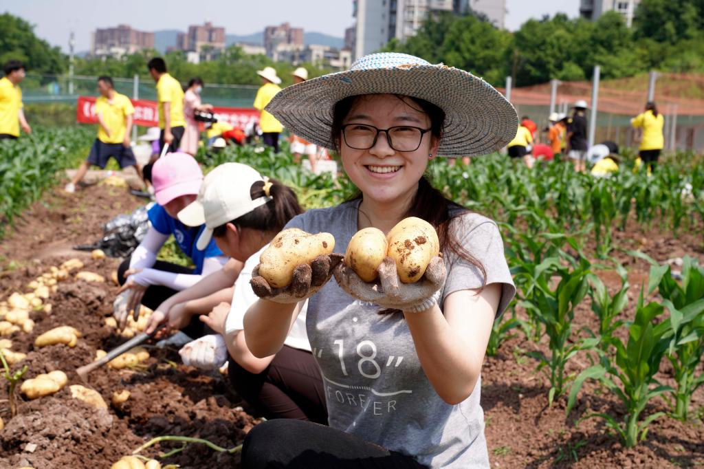 太阳成集团tyc234cc2020级农学专业隆平班的刘亦婷同学在收获了自己种的马铃薯后开心地表示:“虽然每次锄地手上都要长水泡,的确很劳累,但是看到自己种植的白白胖胖的土豆,觉得此前起垄、改膜、浇水、施肥所花的功夫都没白费。我们平常学习的都是理论知识,种植马铃薯是一次将理论付诸实践的难忘经历。”