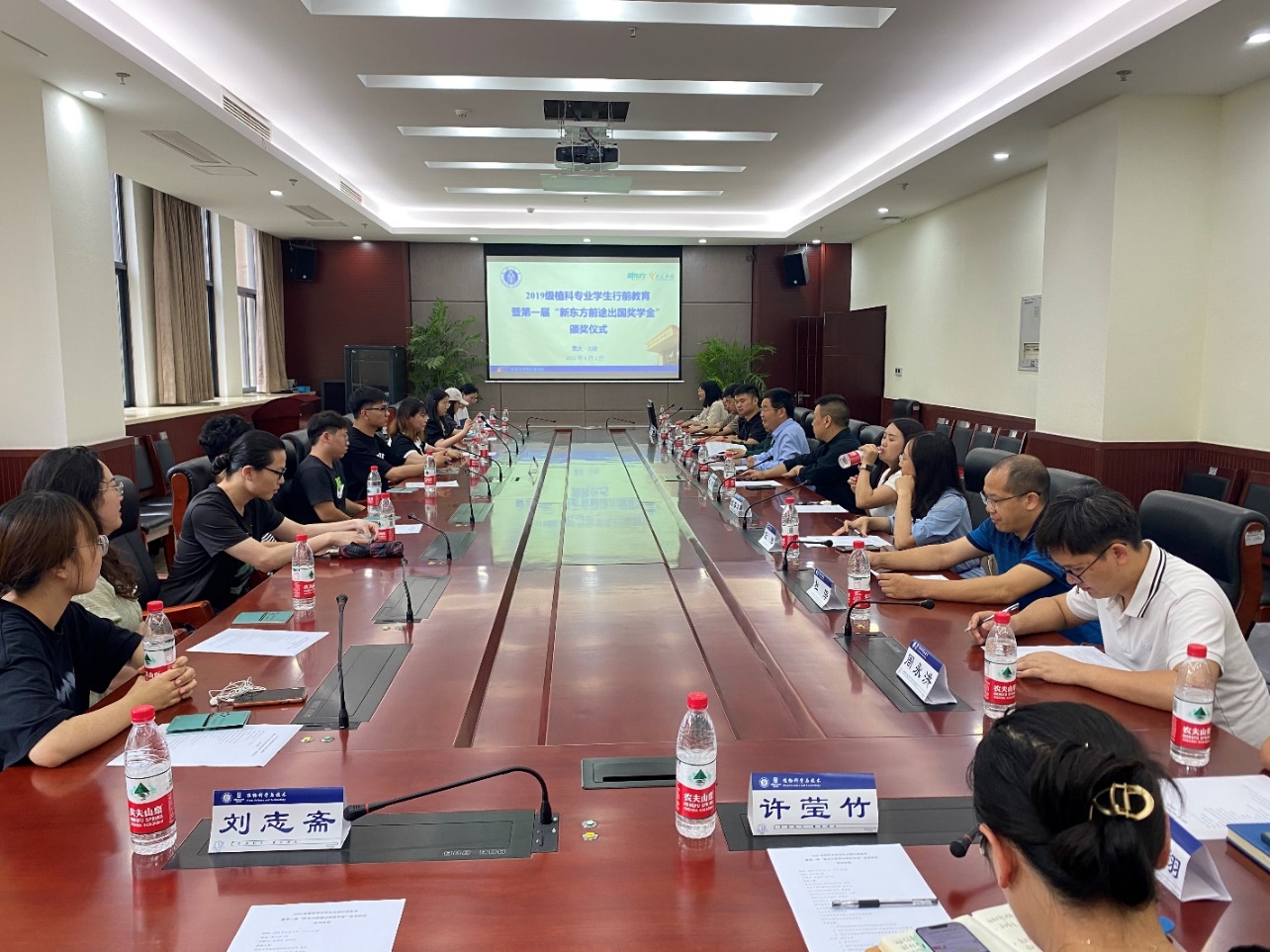 会上为员工颁发了第一届“新东方前途出国奖学金”。为了鼓励和支持植物科学与技术(中外合作办学)专业的员工积极参加海外交流学习任务,新东方前途出国公司出资9万元在公司设立奖学金,今年设立一二等奖学金共3万元。同时,公司给予每位员工5000元资助。