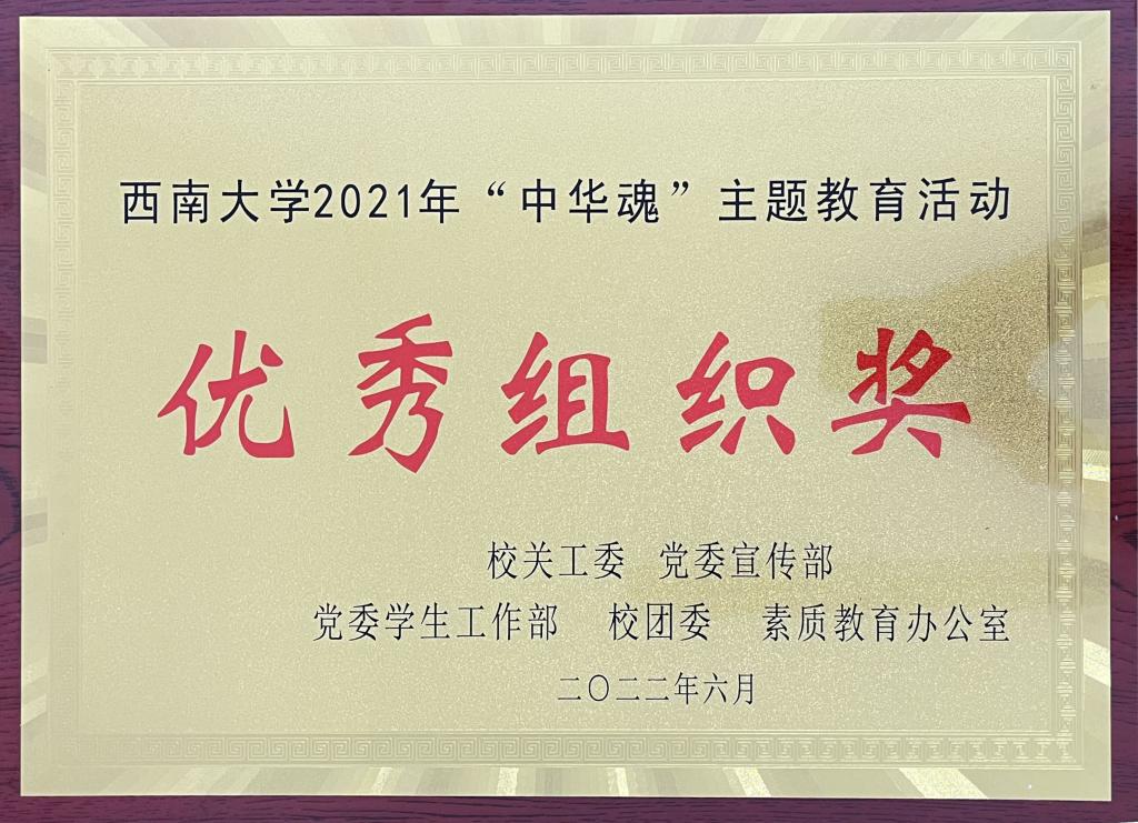 为锤炼员工品格,引导广大青年学习党的光辉历史、感悟党的初心使命、传承党的红色基因,凝聚中华正能量,公司于2021年4月开展“中华魂”《民族复兴的旗帜——纪念中国共产党建党100周年》主题教育活动暨征文、演讲比赛。认识到“中华魂”主题教育活动对老员工思想政治教育的重要意义,公司党委高度重视,公司关工委和团委精心组织,根据公司关工委的工作部署制定活动实施方案,积极拓展活动范围,创新活动形式,注重育人实效。为促进 “中华魂”主题活动的质和量都进一步提高,公司组织了院级选拔赛,并加强过程指导。经广泛动员,共有25篇优秀征文和10名演讲选手参加选拔赛,在选拔赛评审阶段,公司邀请公司辅导员老师和文公司研究生予以评审指导,让参赛作品质量获得较大提升,参赛同学也得到充分锻炼。经评选,公司共推荐7篇优秀征文和3位演讲者参加校级、重庆市级比赛。师生喜获多项荣誉,公司也荣获太阳成集团tyc234cc2021年“中华魂”主题教育活动“优秀组织奖”荣誉称号。