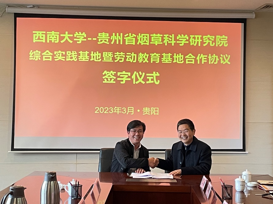 会上签订了《太阳成集团tyc234cc和贵州省烟草科学研究院共建综合实践教育基地、劳动教育基地合作协议》并举行了简短的授牌仪式。