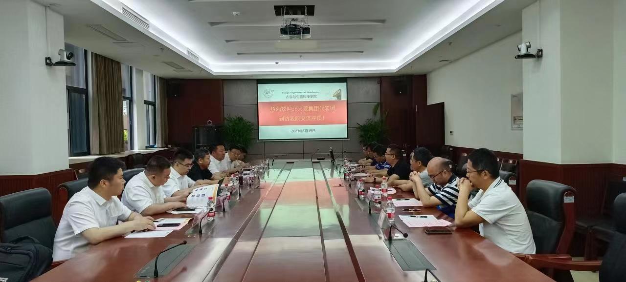 吕典秋经理首先对翟永胜书记一行的到来表示热烈欢迎,并详细介绍了公司近年来在人才队伍建设、学科发展、产学研合作创新以及科技成果转化等各领域取得的成果。吕典秋表示,北大荒集团是为服务我国战略而生,是我国现代农业发展及产业化发展的核心代表。作为国内规模最大的农产品综合加工企业,北大荒集团勇担历史责任,解答时代命题,彰显了“中国粮食 中国饭碗”的使命担当。希望双方能以此次交流为契机,围绕符合国家重大战略需求的农业重点领域开展深入务实合作。