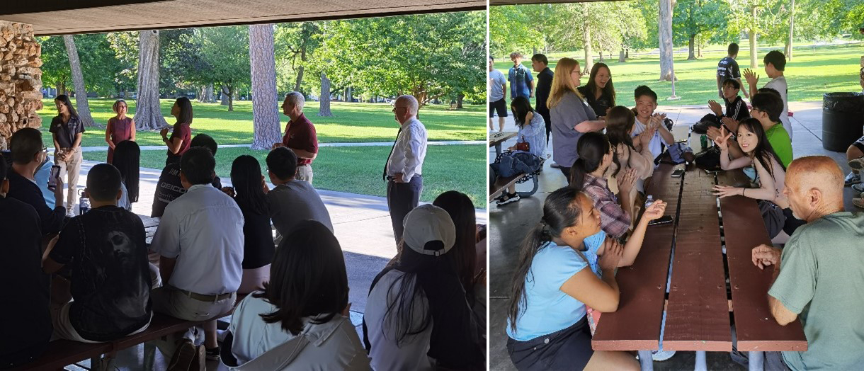 美国当地时间2023年8月9日晚,13名2020级植物科学与技术专业员工在公司中外合作办学办公室主任刘志斋的带领下,顺利抵达布兰森国际机场。密苏里州立大学(MSU)副董事长Brad与山林校区董事长Chin-Feng Hwang(黄晋丰)教授,率中国项目办公室和国际领导力培训中心(ILTC)的老师,一起到机场迎接。