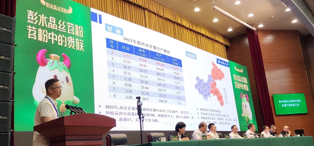 重庆是我国重要的马铃薯、甘薯产区,薯类作物常年种植面积达1000余万亩,在农业经济发展方面占据重要地位。为进一步推动重庆薯类产业发展,助力打造重庆特色品牌, 2024年5月16日,由国家甘薯产业技术研发中心和彭水苗族土家族自治县人民政府共同主办的“彭水苗族土家族自治县红薯产业发展大会”于重庆彭水顺利召开。重庆市薯类产业技术体系创新团队首席吕典秋教授应邀出席大会并作题为“提升创新能力 更好支撑重庆薯类产业发展”的主旨报告。
