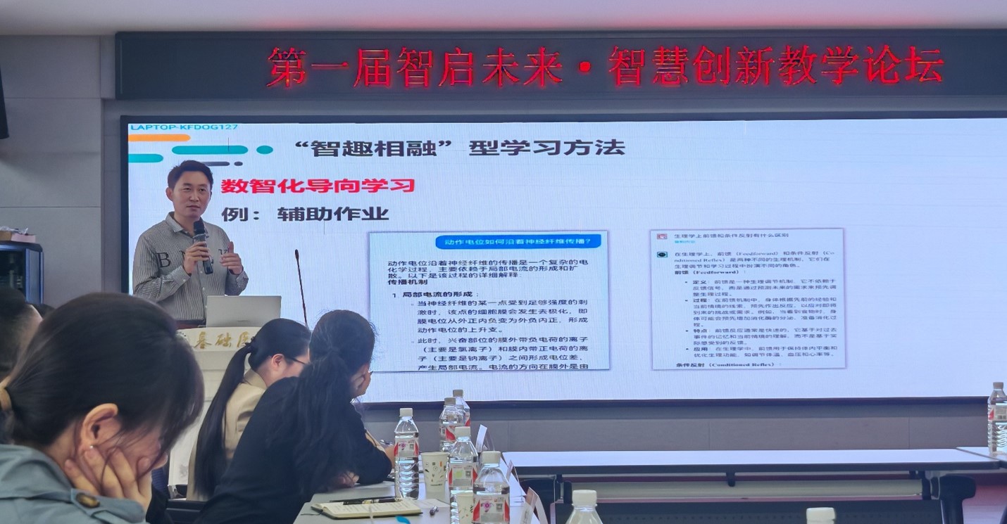 第一个学术报告由李英博副经理主讲,他以“AI赋能,‘智慧中心+智慧平台+智慧课程’建设,助力医学拔尖人才培养”为题,深入剖析了AI融合医学教育与传统医学教育的差异,分享了该院利用AI等前沿技术成功打造智慧学习中心、智慧平台、智慧课程的建设经验,展示了该院在智慧课程体系、专业图谱建设方面的生动案例,启发了青年教师在新农科人才培养方面的新思路、新视野。