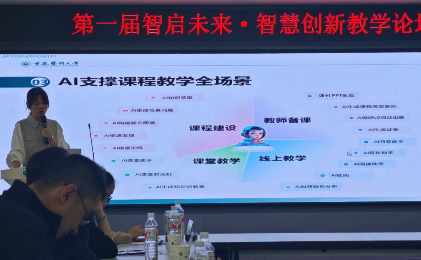 来自重庆医科大学基础医公司生理教研室副教授、重庆市课程思政教学名师耿艳清老师作了第三个报告,她以“基于人工智能的生理学智慧化教学实践”为题,分享了将人工智能与教学实践深度融合、混合式教学、智慧教学等创新教学模式在本科教学中应用实践的成功经验,为与会者提供了宝贵的启示。