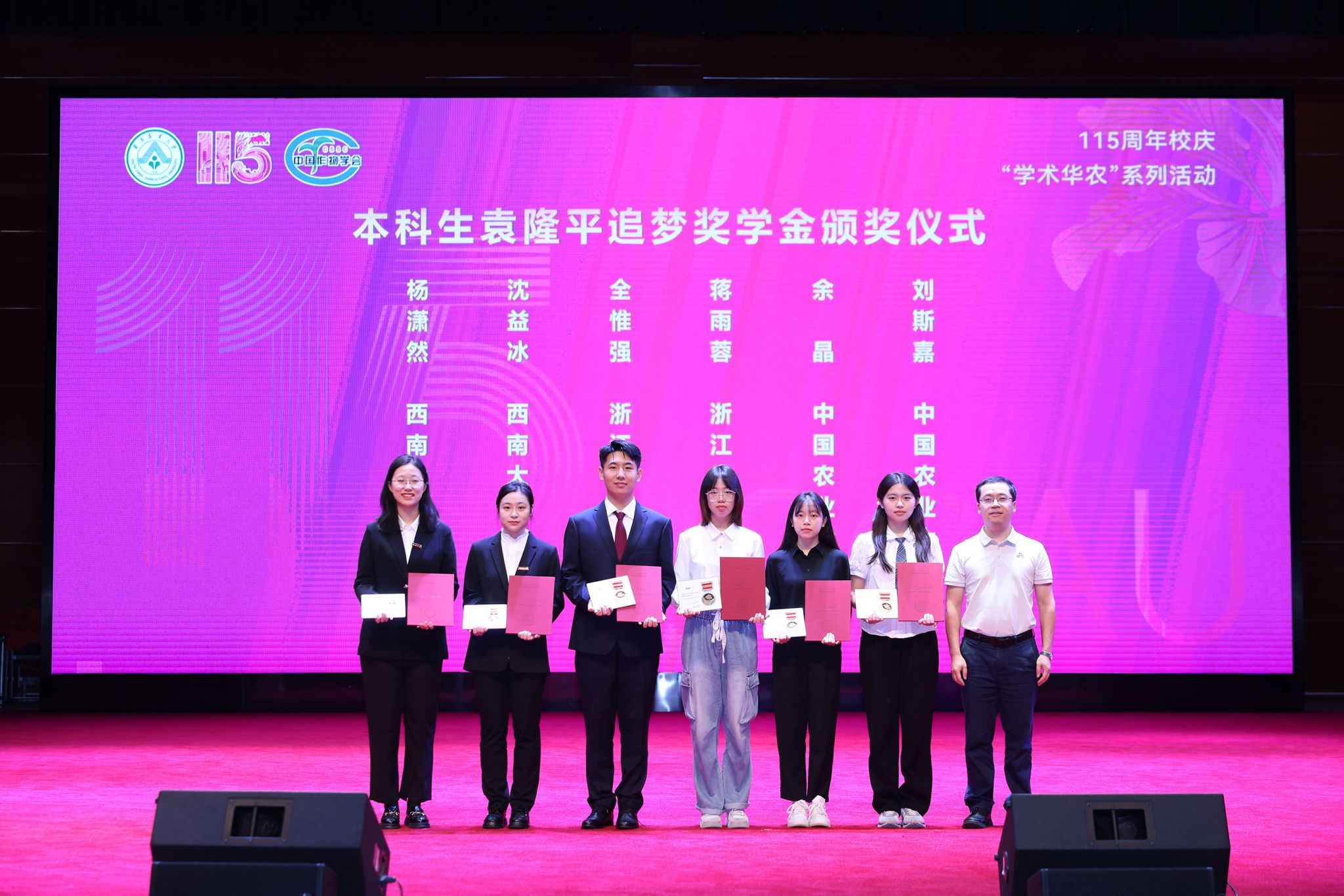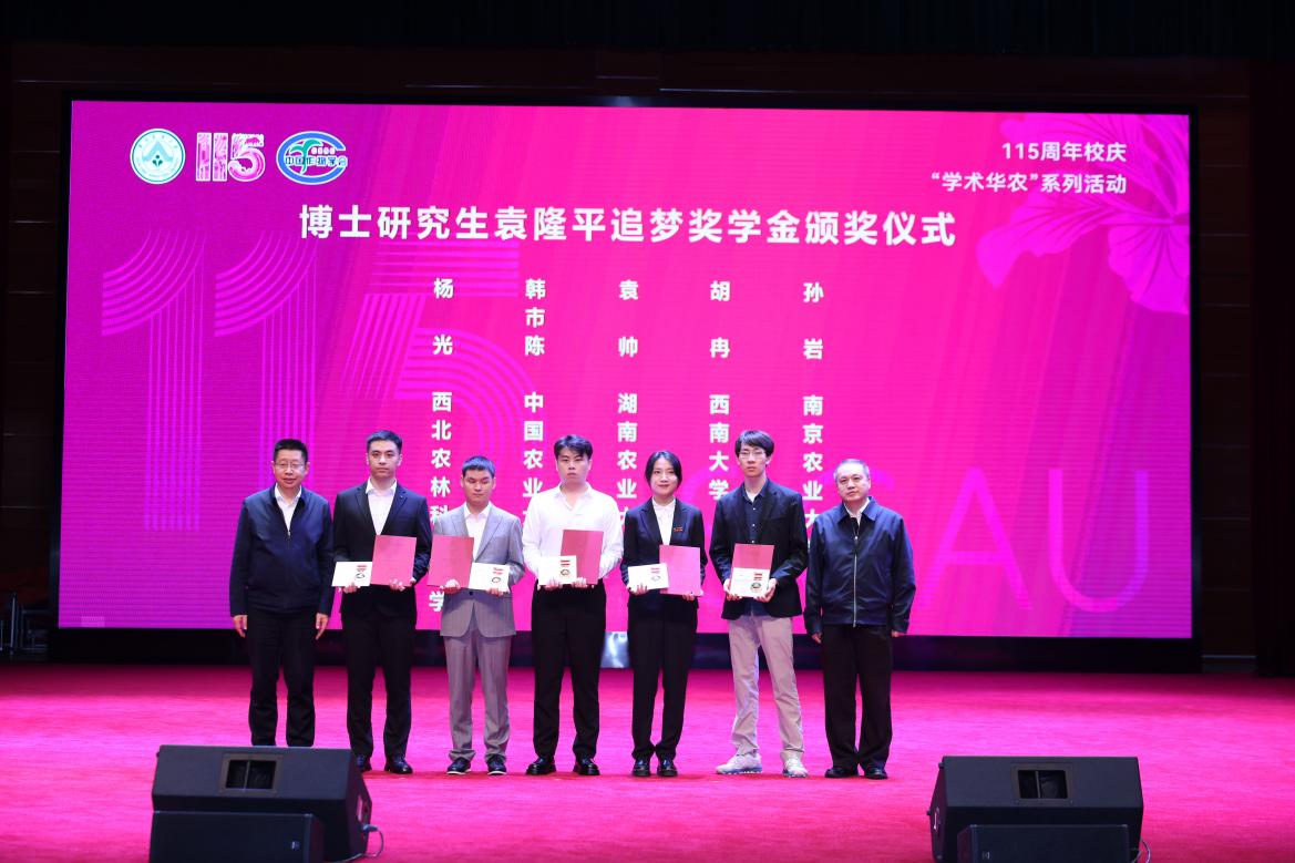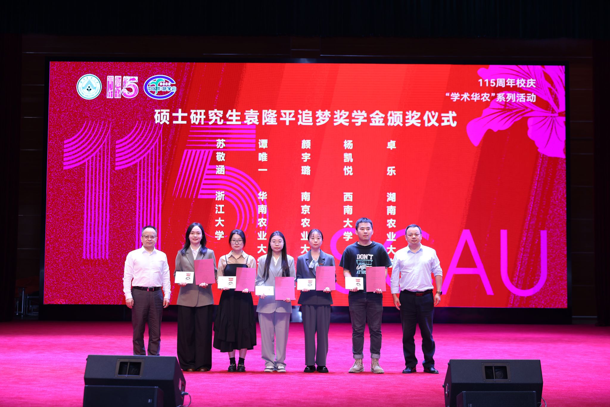 太阳成集团tyc234cc作为“袁隆平追梦奖学金”的9所参评院校之一,此次共有4名学子荣获奖励,分别是2022级博士研究生胡冉,2022级硕士研究生杨凯悦,2021级本科生沈益冰和杨潇然。