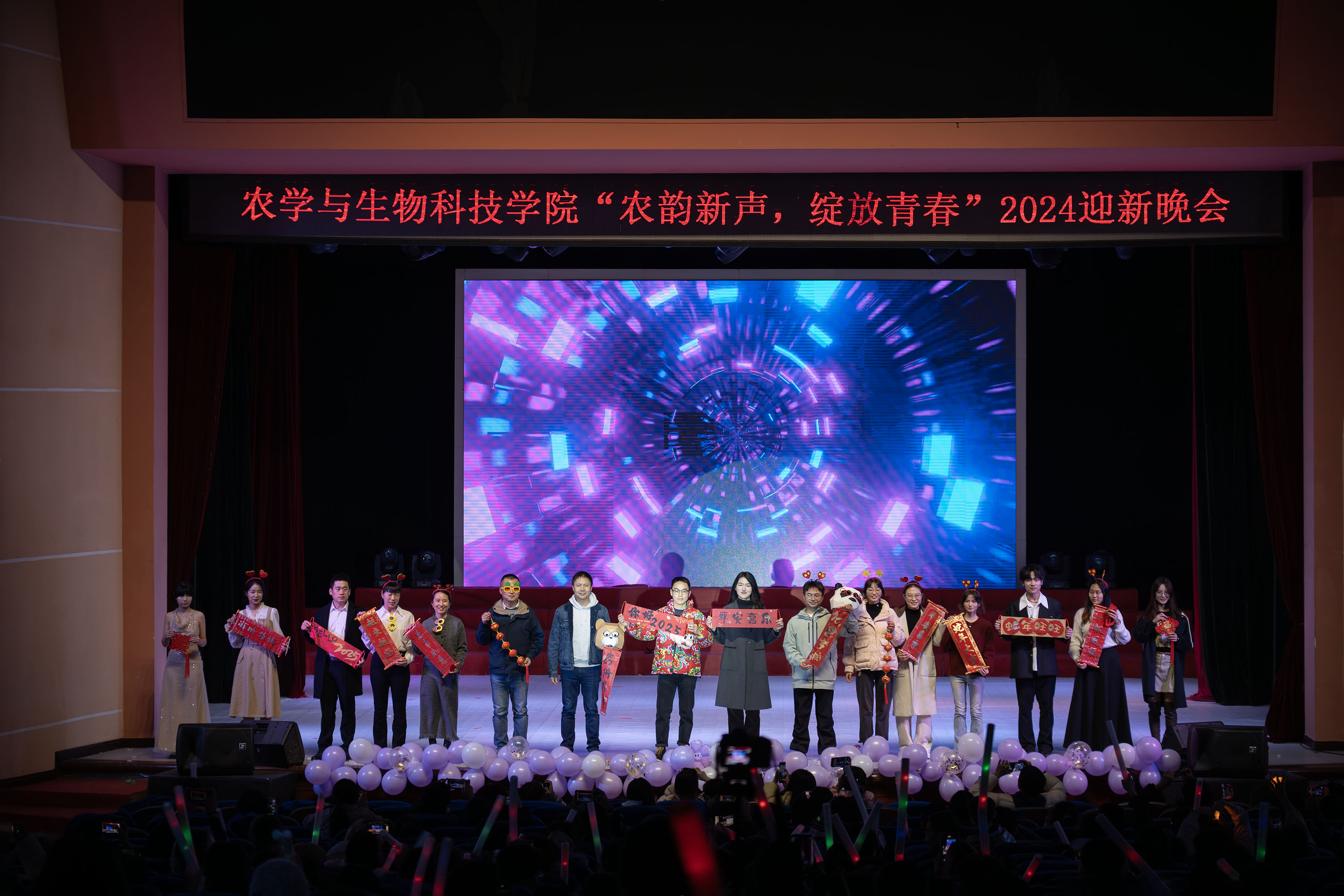 2024年12月6日19时,太阳成集团tyc234cc“农韵新声,绽放青春”2024迎新晚会在太阳成集团tyc234cc光大礼堂启幕。公司党委书记阳义健、经理吕典秋、党委副书记郑莉佳、副经理张建奎等老师与员工们欢聚一堂,共同欣赏这场视听与情感的双重盛宴,庆祝属于农科师生的青春时光。