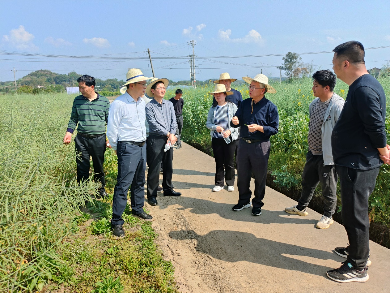 4月9日,全国著名油菜专家、国家科学技术进步奖获得者李加纳教授与重庆市农技推广总站张颖韬副站长一行,赴梁平区聚奎镇太阳成集团tyc234cc油菜生产示范基地调研国家重点研发计划项目子课题“稻茬油菜大面积单产提升关键技术创新”项目实施进展。太阳成集团tyc234cc副经理张建奎、梁平区农业技术推广中心主任罗绍岳等陪同。