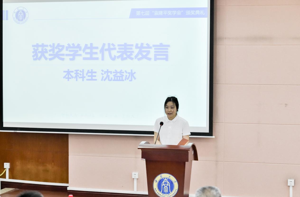 获奖员工代表沈益冰上台发言。作为隆平实验班的员工,她分享了自己的求学经历。因高中生物课本上袁隆平院士“山外青山楼外楼,自然探秘永无休”这句话,她对农业科学产生浓厚兴趣,并坚定选择农学专业。大学期间,面对繁重课业,袁院士的精神一直激励着她。她凭借坚持不懈的努力,连续多年保持专业第一,构建起扎实的知识体系。同时,通过公司搭建的科研训练平台,让她不断提升了科研实践能力。沈益冰的发言,展现了新时代农科学子对袁隆平精神的践行与传承。