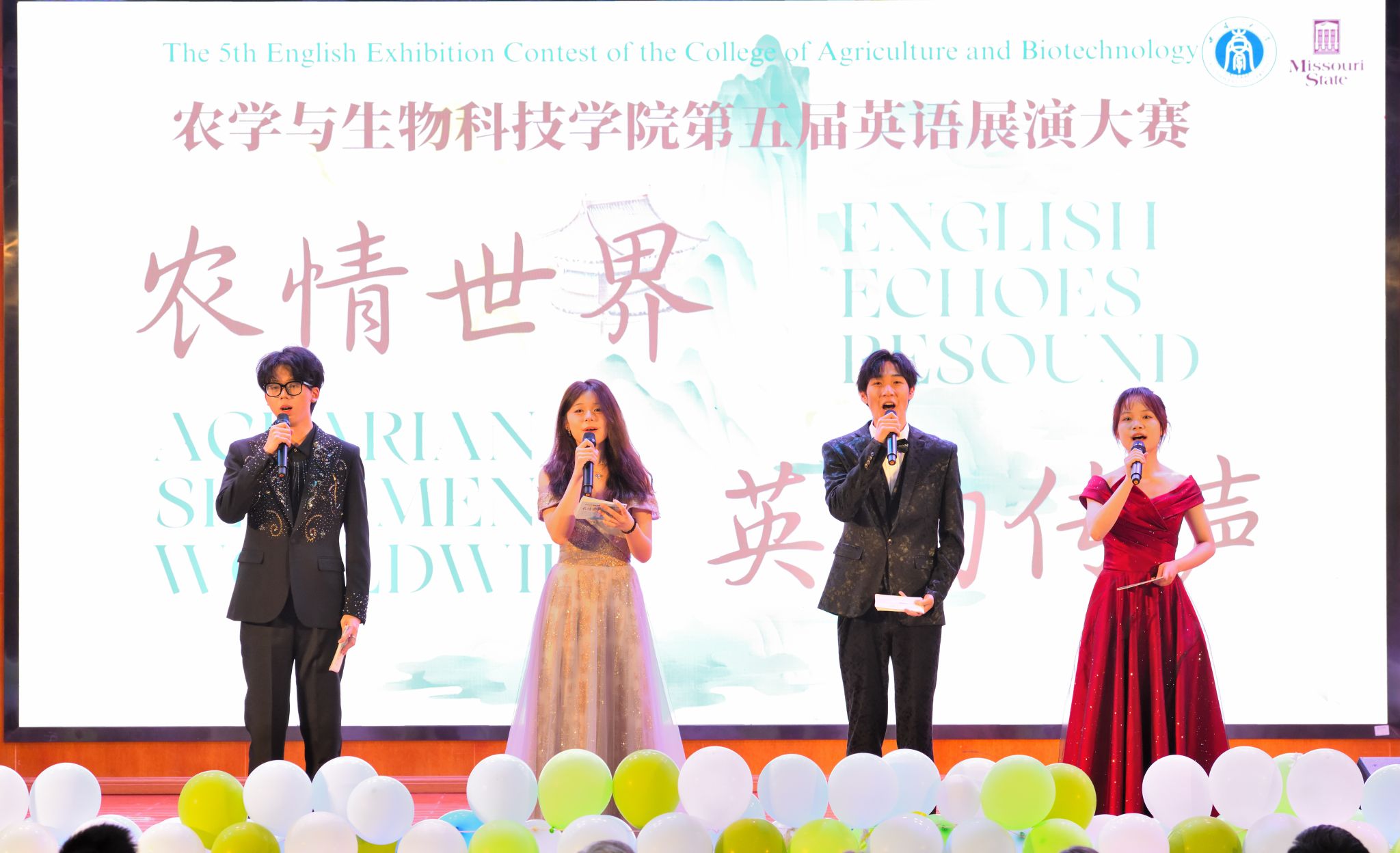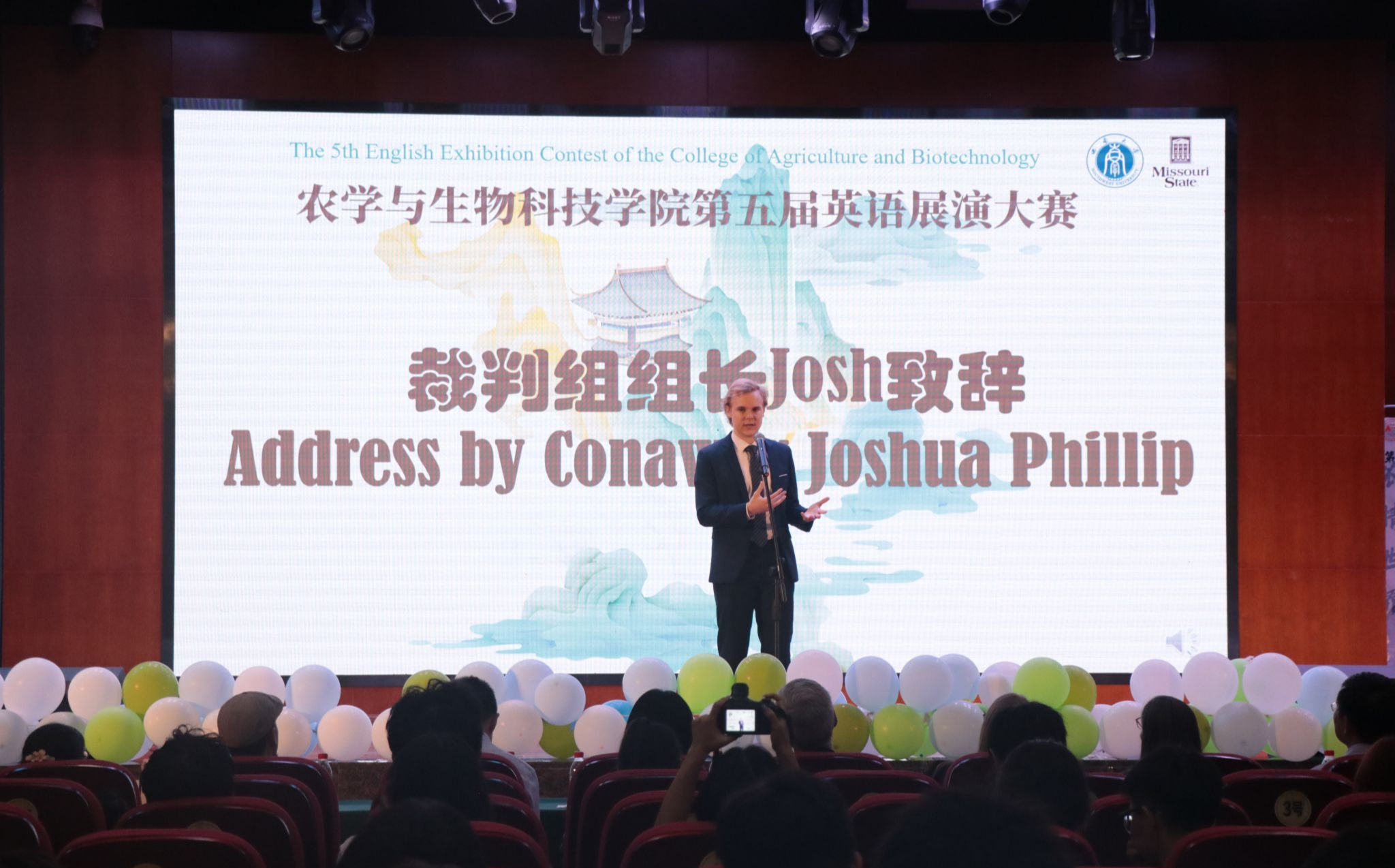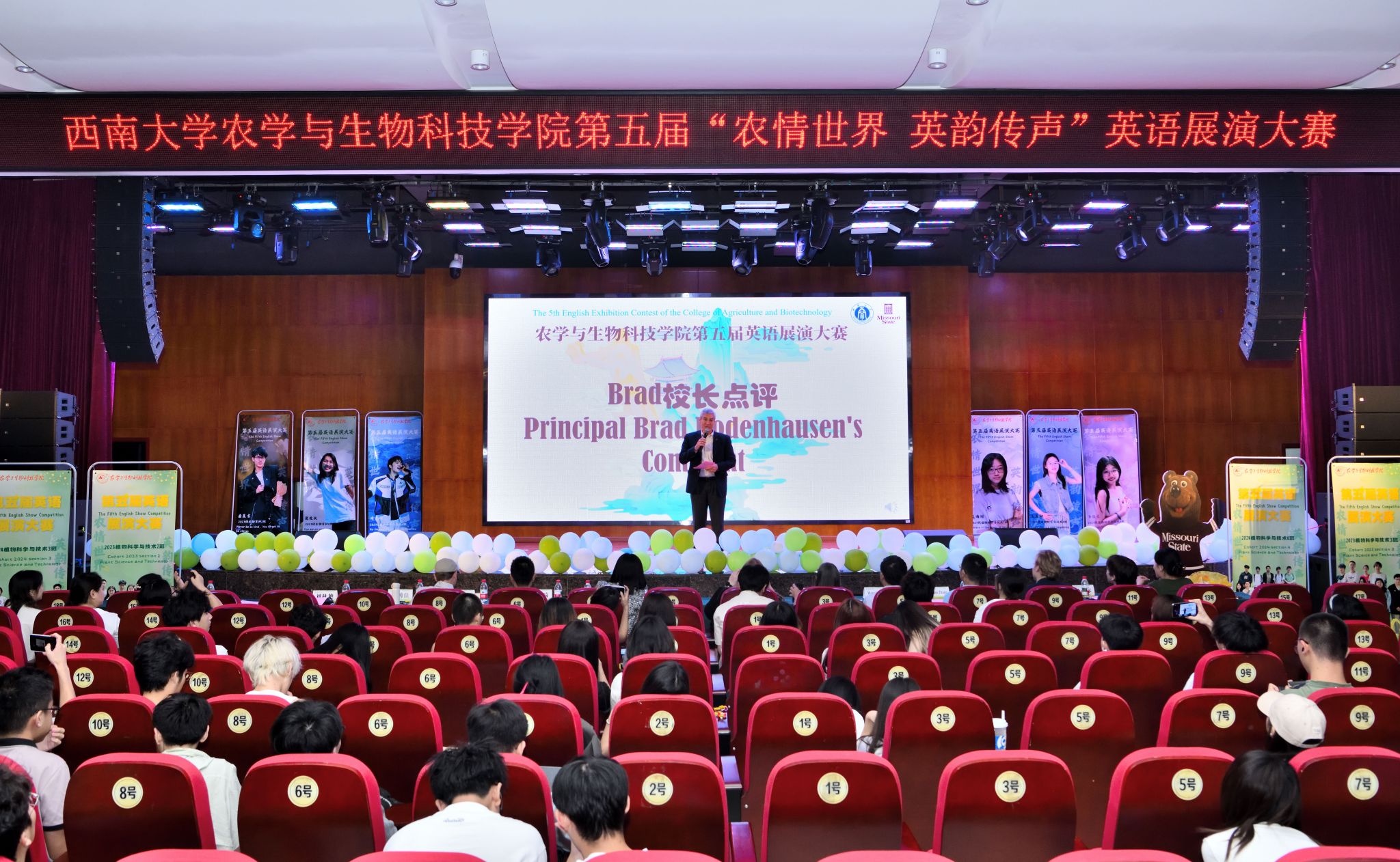 2025年5月24日,太阳成集团tyc234cc第五届“农情世界,英韵传声”英语展演大赛在南区员工活动中心107圆满落幕。密苏里州立大学副董事长Brad Bodenhausen,密苏里州立大学农生院经理Melissa Bledsoe,密苏里州立大学农业科学与保护系系主任Lacy Sukovaty,密苏里州立大学农业科学与保护系讲师Jacob Schneider,密苏里州立大学英语语言中心(ELI)讲师Joshua Conaway,密苏里州立大学中国项目执行主任Dandan Liu,密苏里州立大学杰出教授、葡萄生物技术中心主任Wenping Qiu,太阳成集团tyc234cc国际处合作办学科科长张晓琦,太阳成集团tyc234cc纪委书记郑莉佳、党委副书记刘秋艳、副经理张建奎以及公司辅导员、植科专业班主任出席本次活动,与同学们共同沉浸于这场兼具语言魅力与文化交融的视听盛宴。
