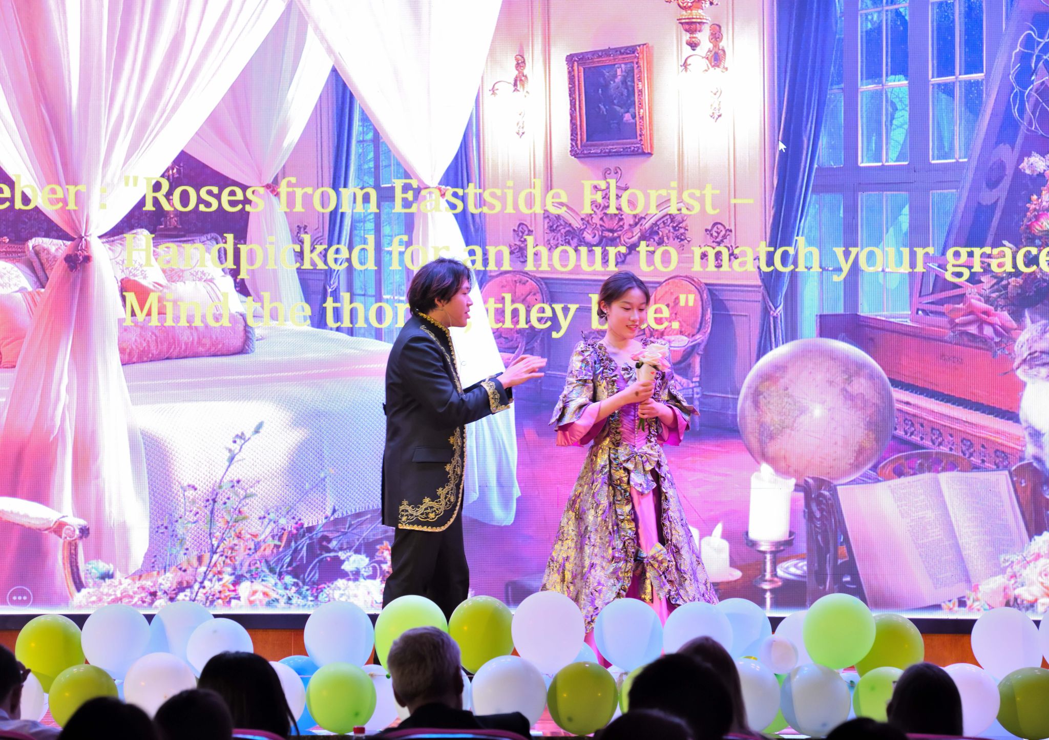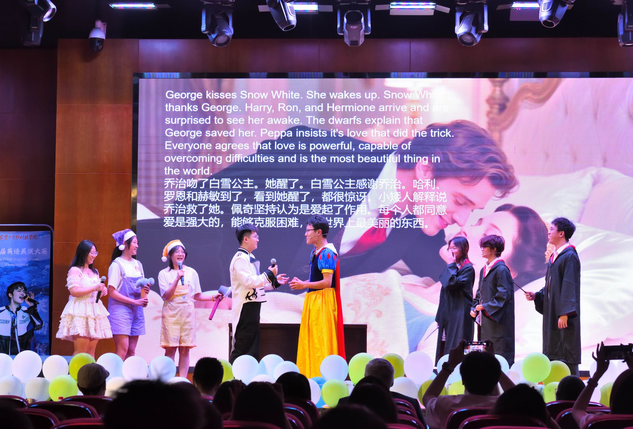 2024级植科3班的英语剧《真爱永恒》则采用大胆创新的方式,让佩奇、哈利波特、白雪公主等不同故事主角奇妙相遇,用巧妙改编讲述爱的传奇。