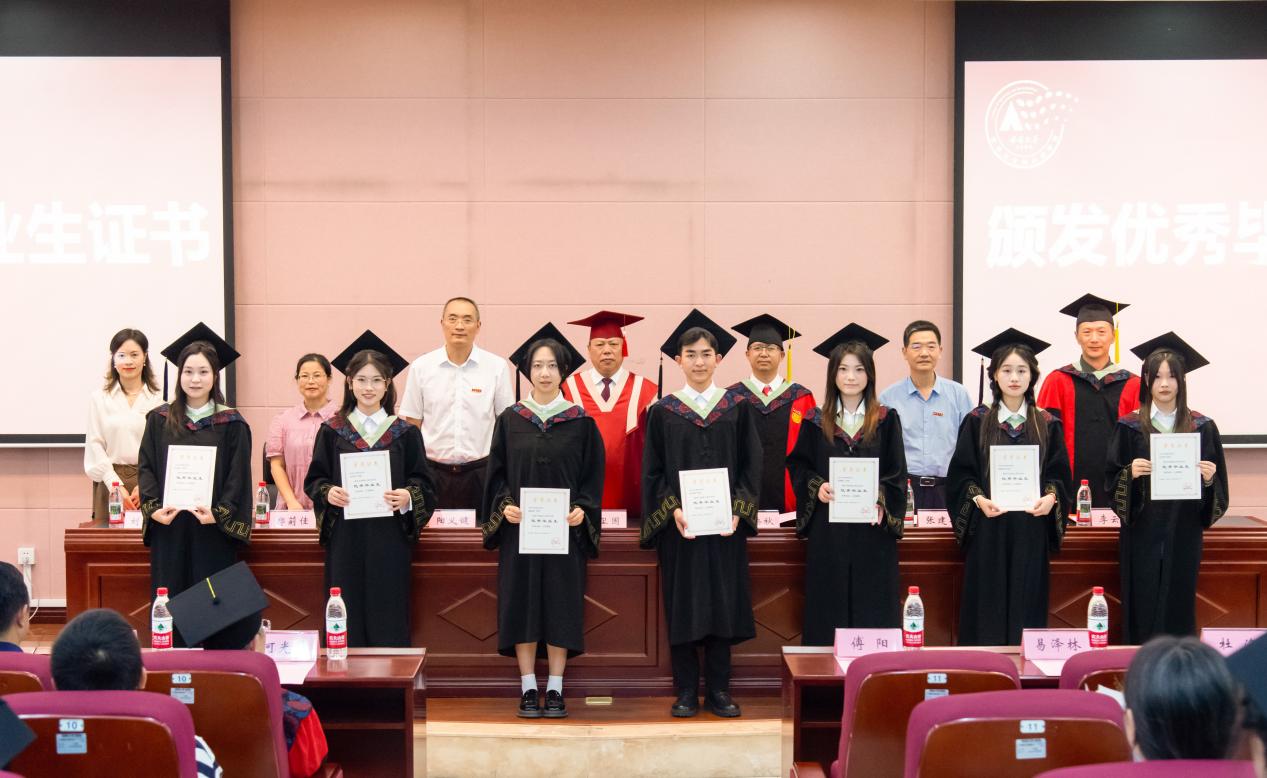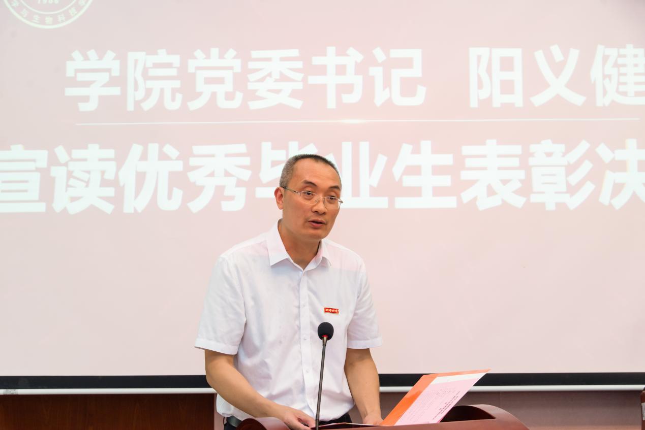 典礼在庄严的国歌声中拉开帷幕,全体师生肃立唱国歌。公司党委书记阳义健首先宣读了2025届优秀毕业生表彰决定,对在学业和科研方面表现优异的33名本科生和26名研究生进行了表彰,并为他们颁发荣誉证书。随后,公司副经理张建奎宣读了毕业决定和学位授予决定,正式确认382名毕业生圆满完成学业。