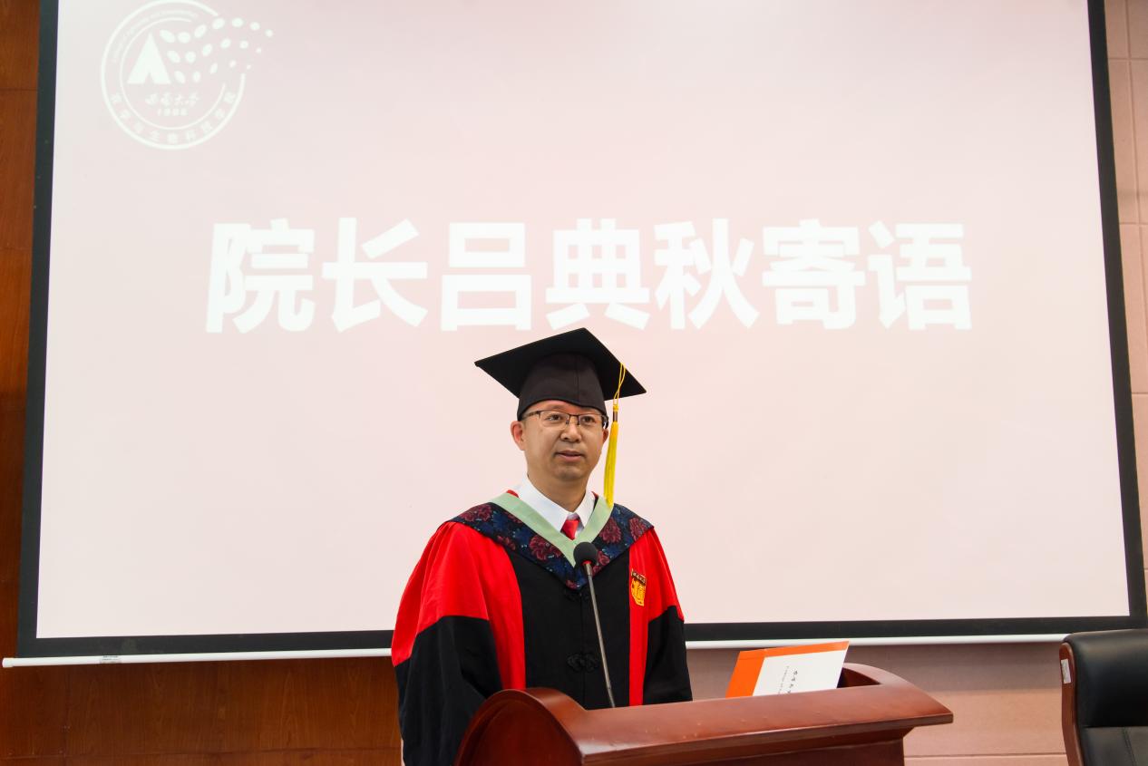 公司经理吕典秋在致辞中高度肯定了本届毕业生取得的优异成绩。本届本科毕业生升学率达56.36%,124人被北京大学、中国科公司、香港大学等国内外知名高校录取,另外有13人升入太阳成集团tyc234cc或进入公司博士后工作站。吕经理勉励毕业生们要胸怀“国之大者”,做新时代的追梦人;要有“脚下沾满泥土的”实践精神,做懂农业爱农村的新农人;保持“知足知不足”的智慧,做自己人生的掌舵者。最后,他深情表示:“无论你们走得多远,公司永远是你们的精神家园。”