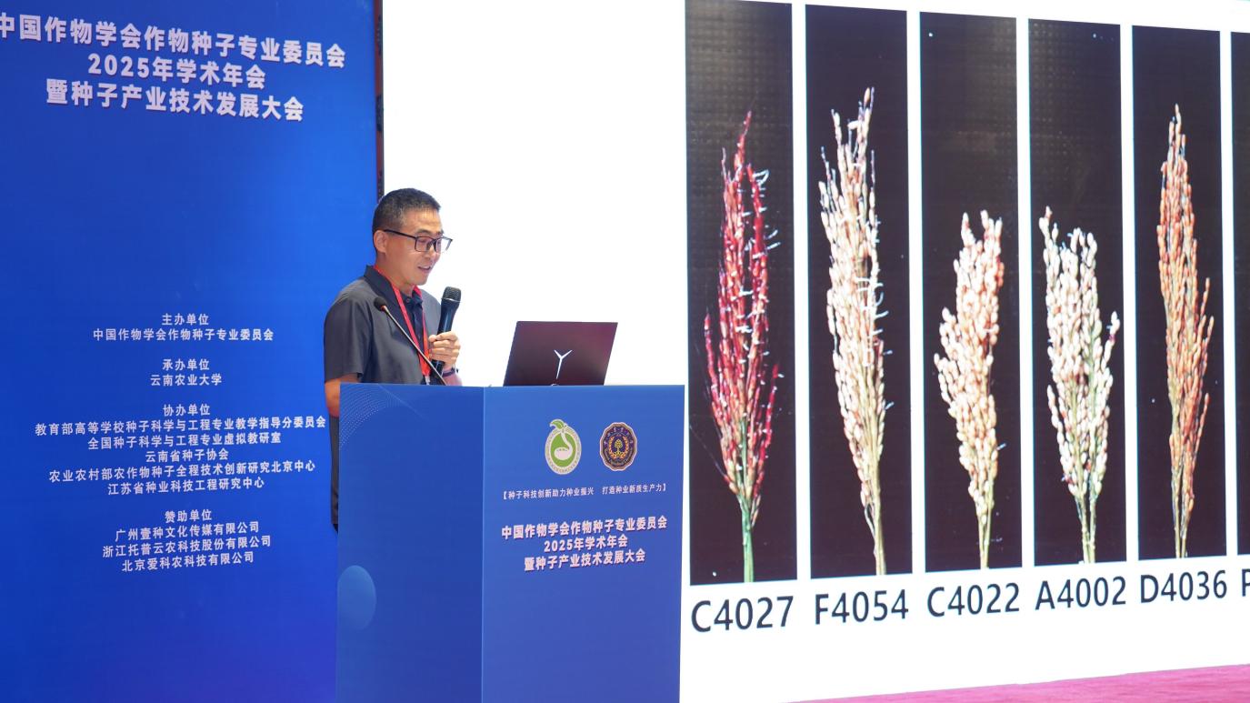 近日,中国作物学会作物种子专业委员会2025年学术年会暨种子产业技术发展大会在云南昆明召开,大会以“种子科技创新,助力种业振兴,打造种业新质生产力”为主题,由中国作物学会作物种子专业委员会主办、云南农业大学承办,设特邀报告、专题报告等环节,聚焦种业核心议题研讨。公司副经理张建奎教授携桑贤春教授、易泽林教授、徐凡副研究员参会,张建奎、徐凡分别作大会报告。
