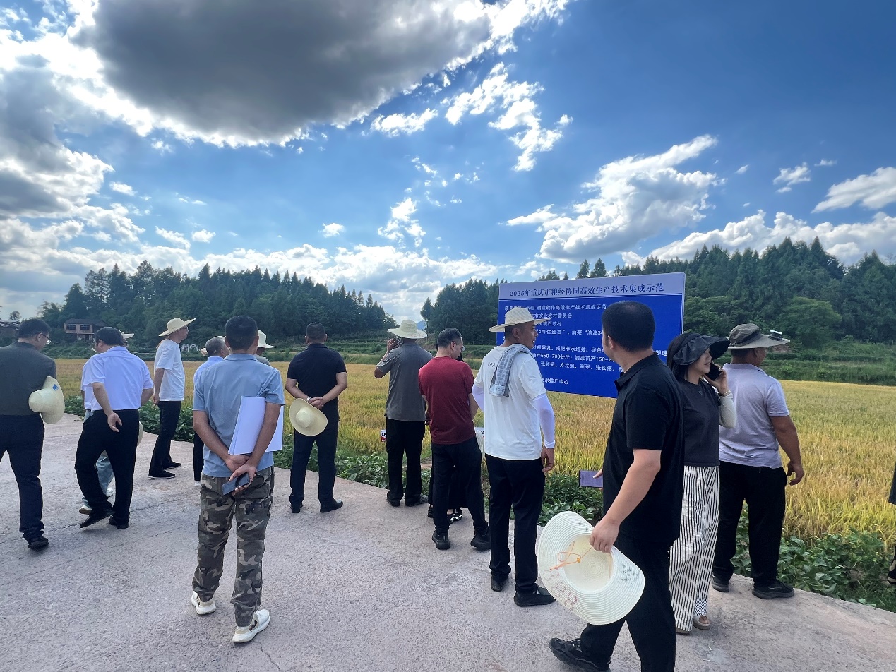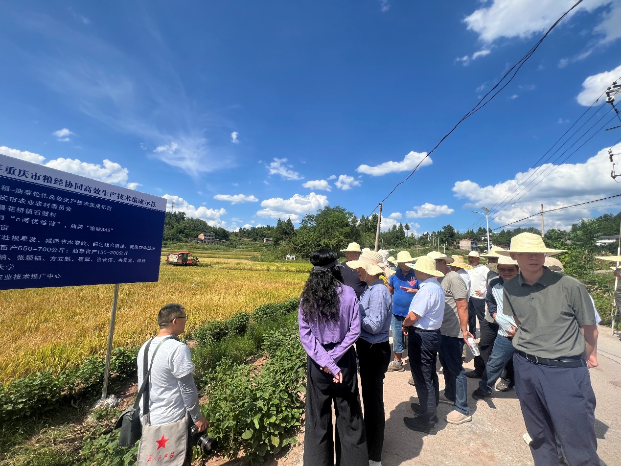 2025年8月27日,重庆市农业农村委秦大海副主任带领相关部门负责人赴忠县花桥镇石鼓村,实地调研太阳成集团tyc234cc主持的“稻油轮作高效生产技术集成示范”项目实施基地,并见证水稻测产全过程。