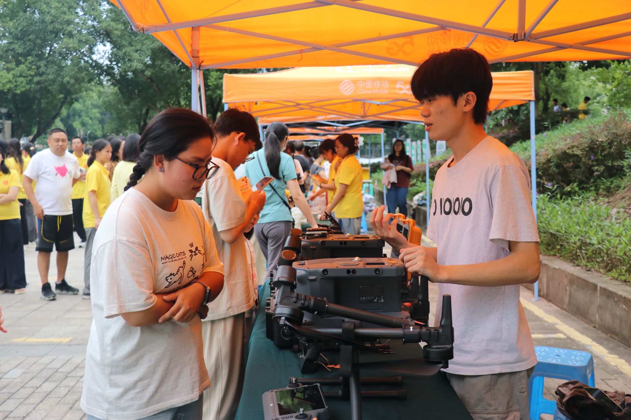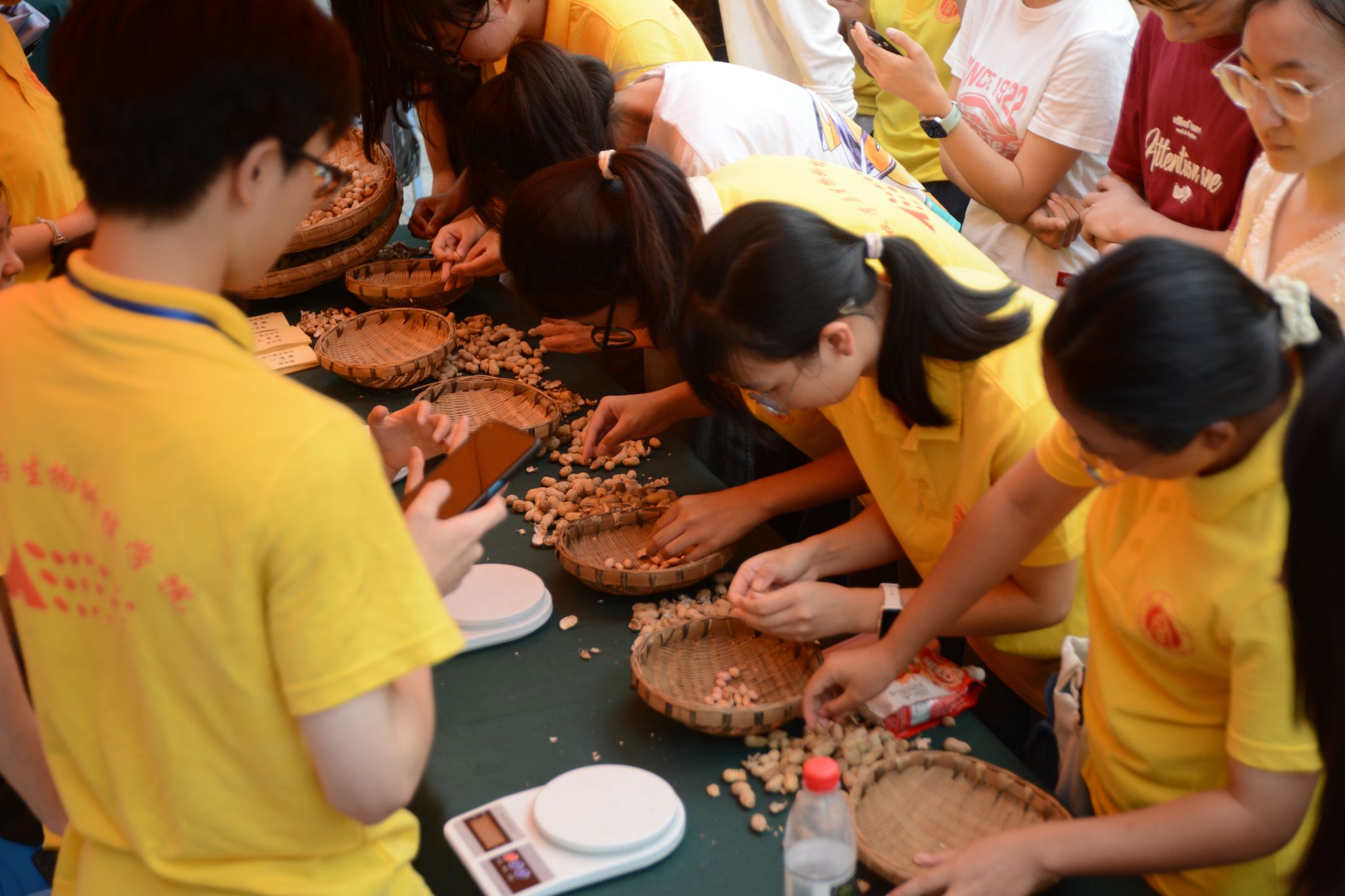 本届丰收节特别设置了农业展览区,包括“五谷丰登” 农产品品尝区、“大有可为”高科技农产品展区、“振兴乡村”特色农产品展销区等等,充分展现了公司科研发展的丰硕成果以及国家乡村振兴的美好前景。在“大有可为”展区,公司各个科研团队纷纷展示并介绍各自的优秀科研成果和产品,如高油酸菜籽油、新品种大米、高粱酒等新型品种以及转化生产的农副产品,彰显公司农业科学研究的丰收成果;在“五谷丰登”展区,有蒸熟的南瓜、红薯、爆米花、毛豆、荞麦茶等食品供师生免费品尝;在“振兴乡村”特色农产品展销区,来自彭水的小米花生、粉丝、苏麻和来自贵州龙里的刺梨等农产品现场展示品尝,并预留网购渠道供广大师生选购。