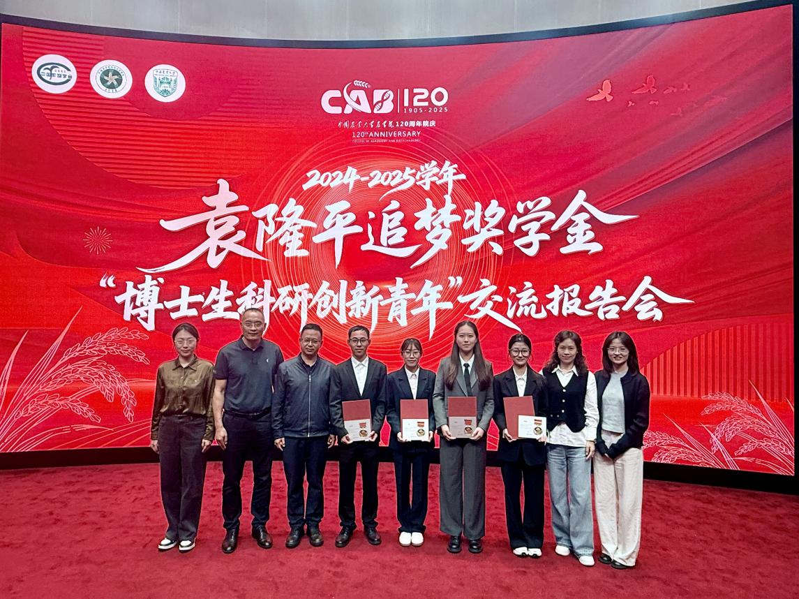 为继承和弘扬袁隆平院士追求真理、敢为人先、锲而不舍、埋头苦干的科学家精神,激励广大农科学子投身农业科研与粮食安全事业,2025年10月14日下午,“2024-2025学年袁隆平追梦奖学金‘博士生科研创新青年’交流报告会”在中国农业大学隆重举行。